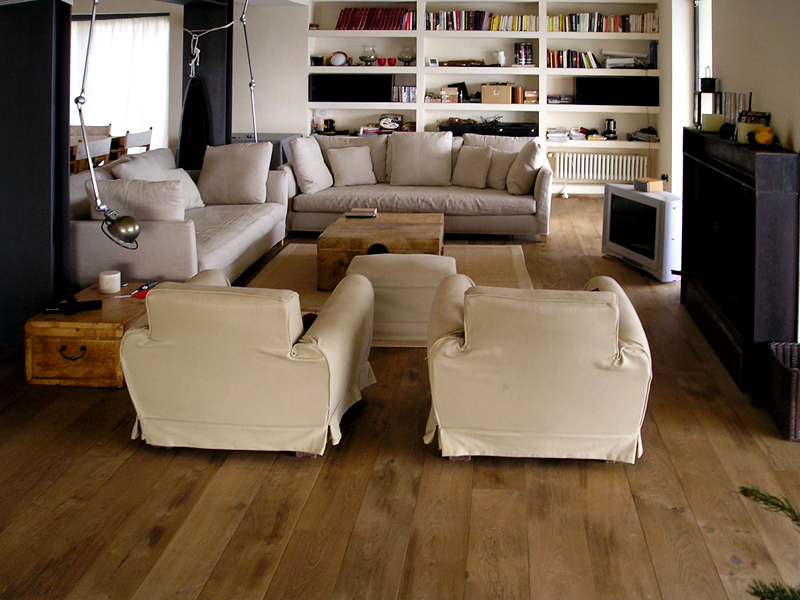 Capalbio, soggiorno con pavimento in listone di rovere termotrattato.