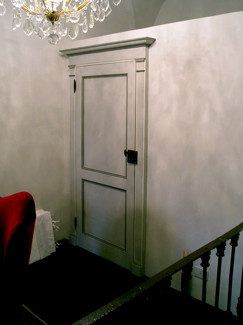 primo ‘800 con serratura esterna, decorazioni in varie tonalità di grigi